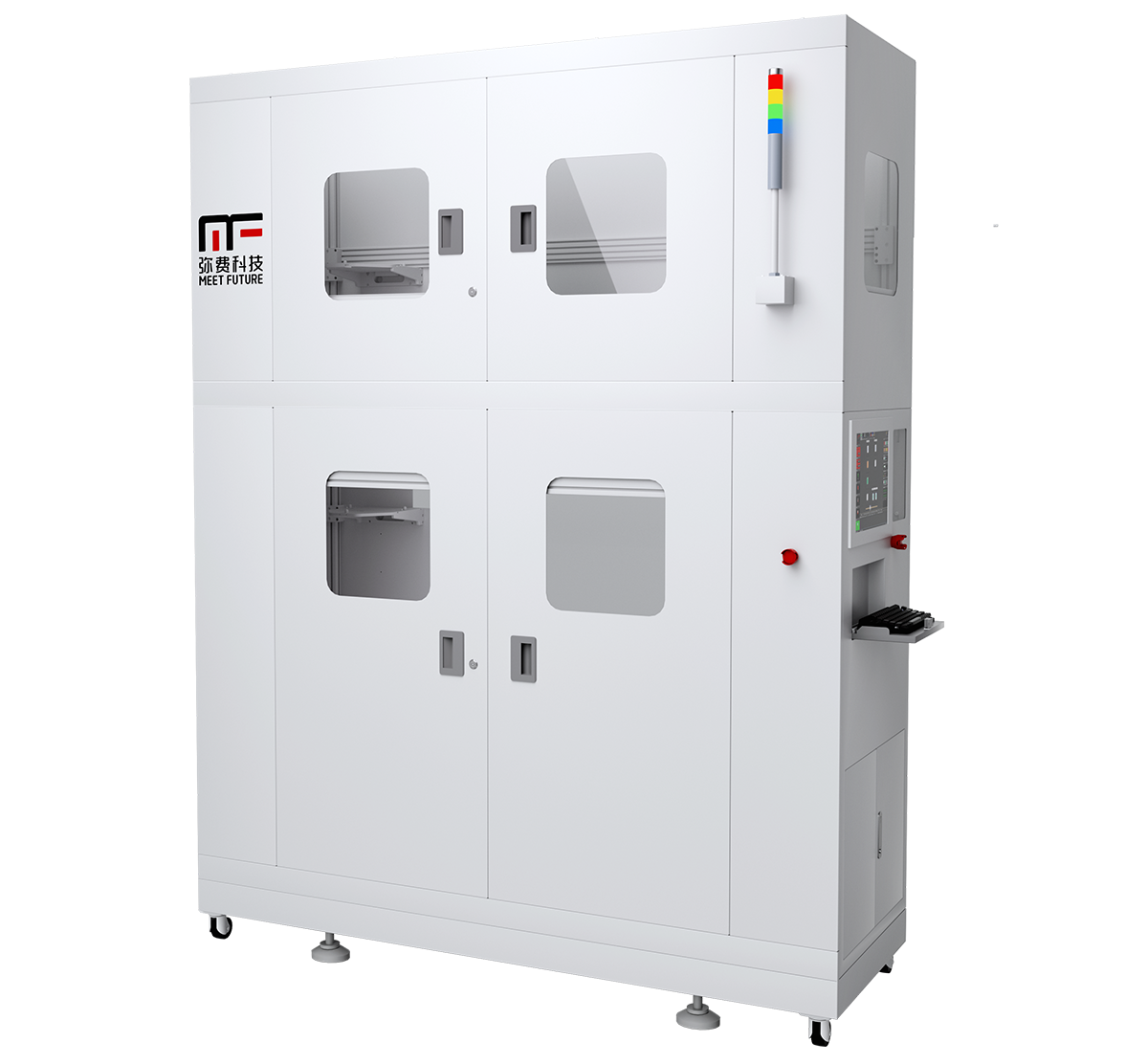 配合天车轨道系统,为光罩盒给予空中批量存储货位,提高晶圆厂得空间利用率,最大化晶圆载具在各个工序间得传送效率。顺利获得Purge管路布局,加装净化单元充入纯净气体,保证光罩盒内微环境,提高良品率。